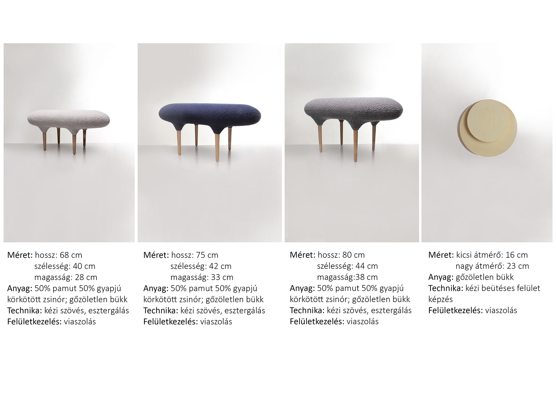 háromdimenziós szövött bútorcsalád, 68x40x28 cm, 75x42x33 cm, 80x44x38 cm;