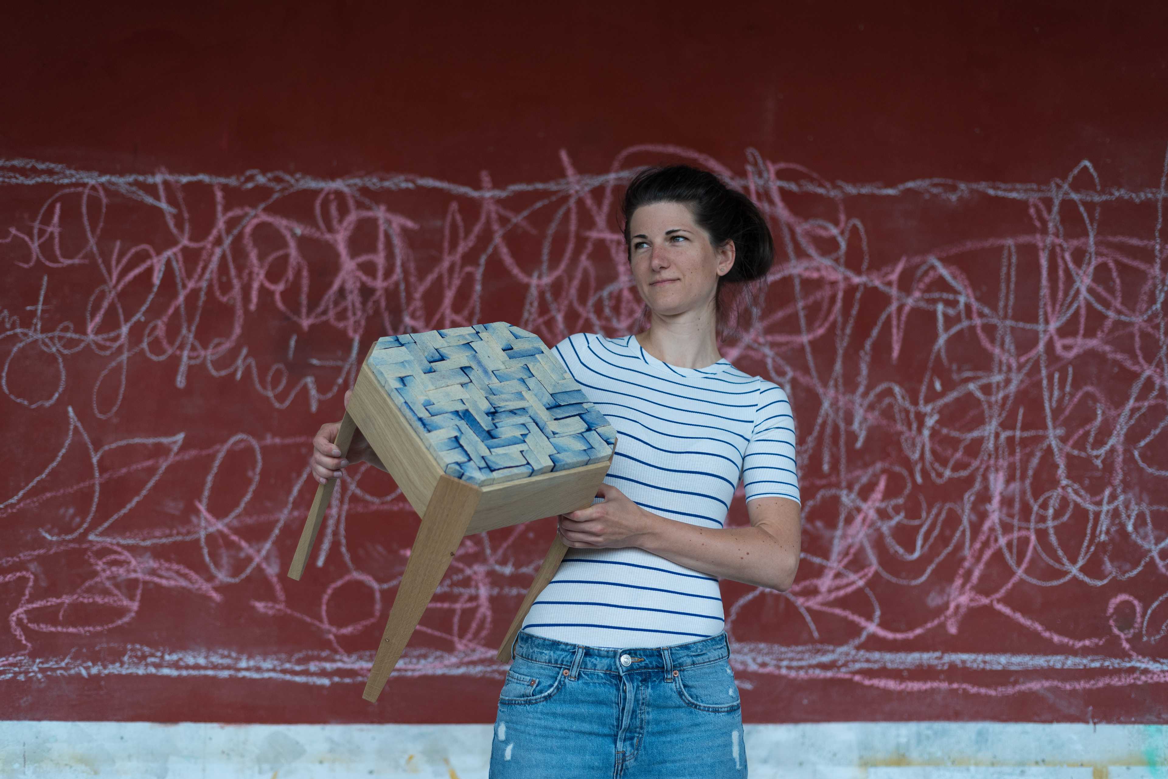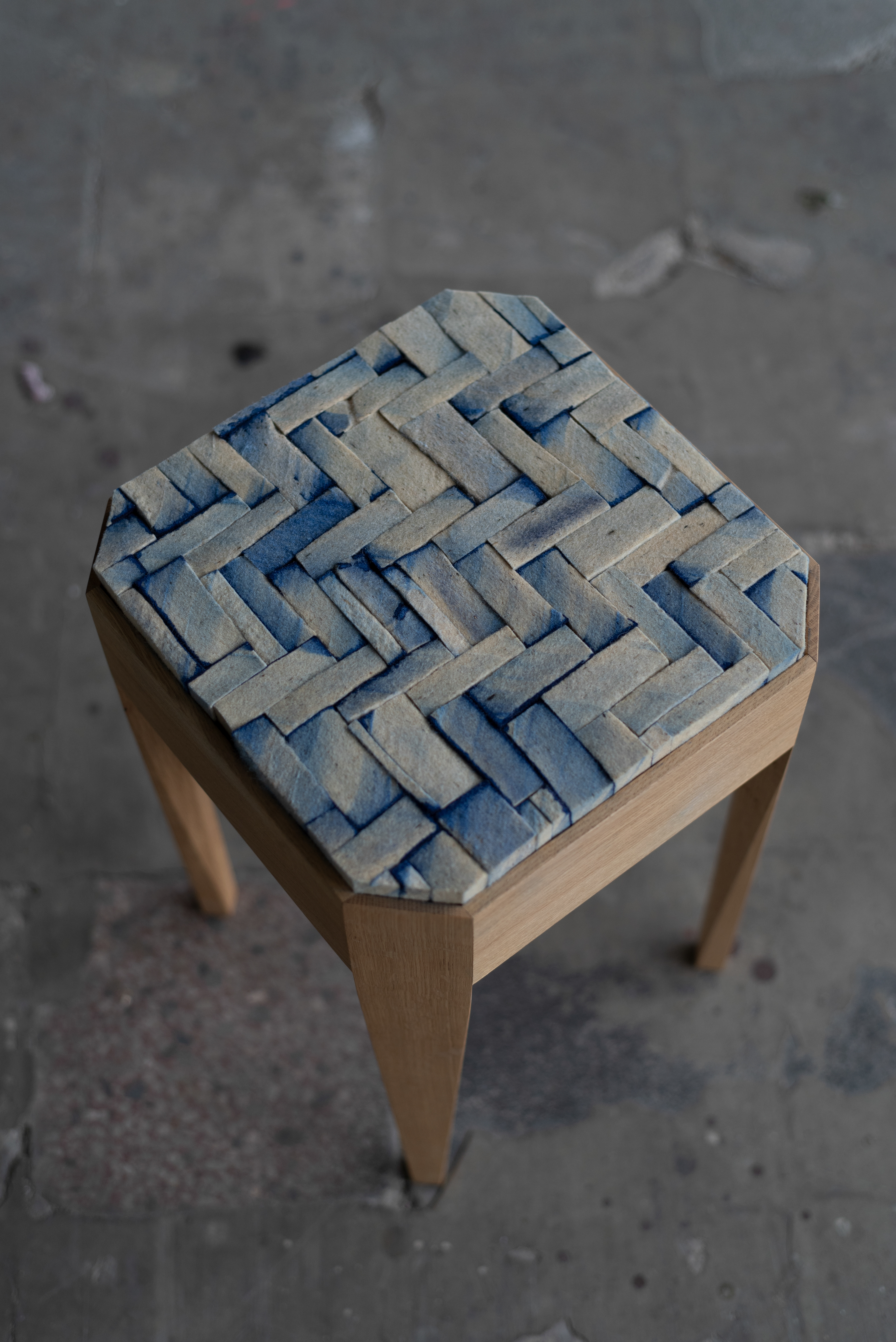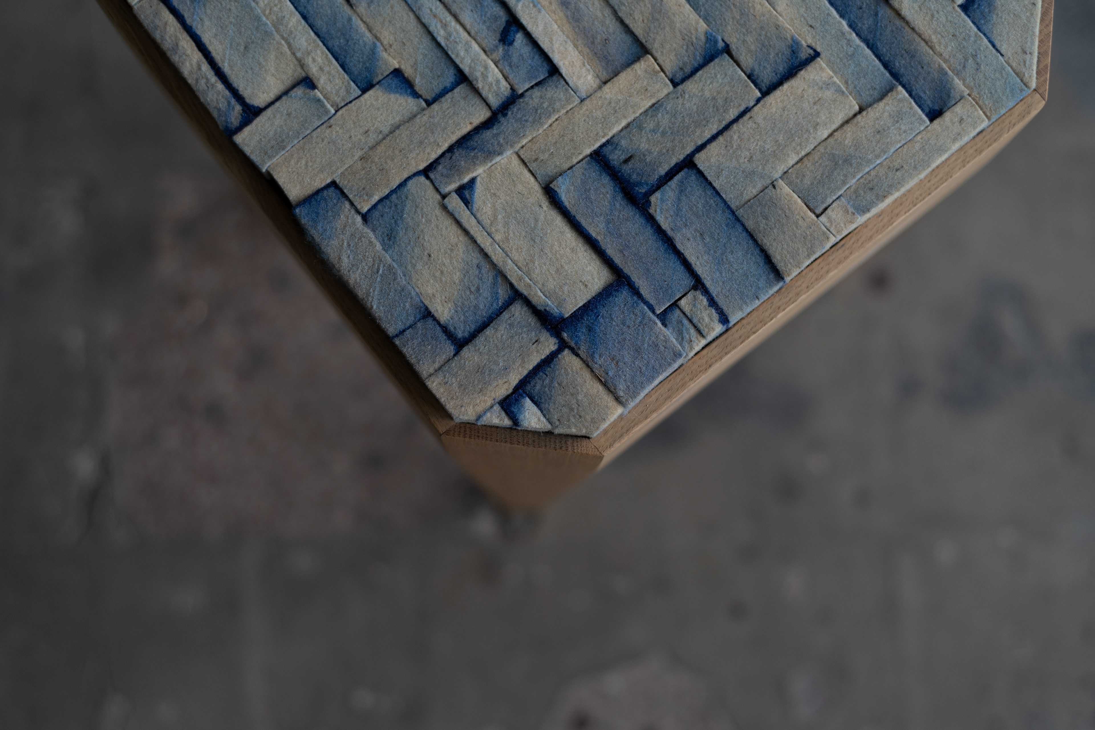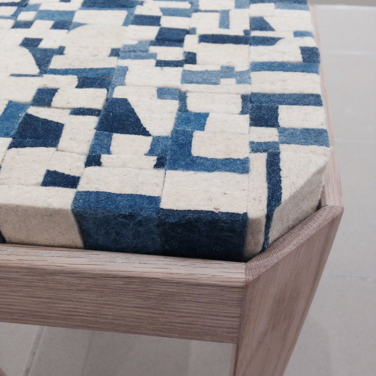 újrastrukturált textilipari anyagszél, gyapjú, 48x26x26 cm; co-working with PDSGN